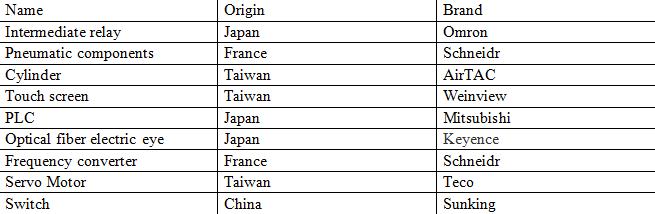 2) న్యూమాటిక్ పార్ట్స్, ఎలక్ట్రిక్ పార్ట్స్ మరియు ఆపరేషన్ పార్ట్స్లో అధునాతన ప్రపంచ ప్రఖ్యాత బ్రాండ్ భాగాలను స్వీకరించడం.